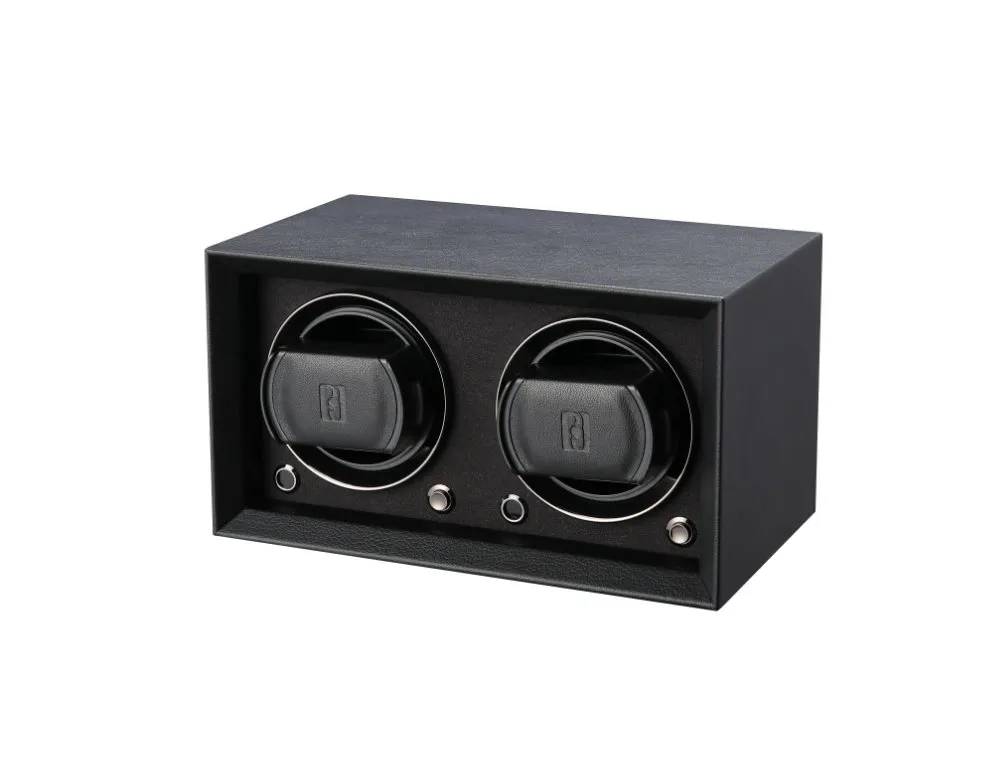 Paul Design Petite 2 是一款无门敞开式腕表盒,设计紧凑,可轻松放入任何橱柜或保险箱。它采用耐用的黑色仿皮材质,内部衬以奢华的丝绒。表托采用弹簧式可调节设计,适合不同尺寸的手腕,并饰以与内部相同的丝绒。每个上链器均可单独编程,通过简单的按钮即可选择 9 种不同的上链速度和方向设置,以满足不同腕表的需求。该设备可使用随附的电源适配器供电,也可使用碱性电池或可充电电池(需另购)。