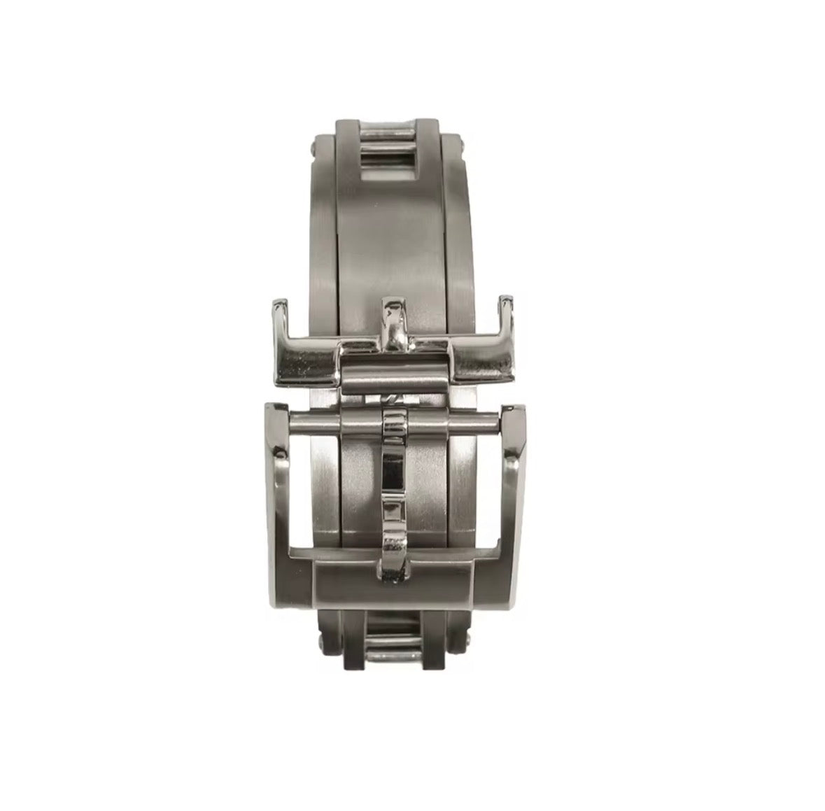 The KronoKeeper stainless steel double-folding butterfly clasp is specially designed for discerning watch enthusiasts. Its double-spring construction combines maximum security with extended comfort, eliminating the risk of accidental unfastening while preserving the natural suppleness of the strap. Made of watch-grade stainless steel, it resists corrosion and everyday wear and tear. The automatic butterfly mechanism guarantees an instant and precise closure, without play or premature wear. Universally compatible with standard-sized leather or rubber straps, this clasp transforms the wearing experience by offering technical reliability and understated elegance. An essential accessory to secure your most treasured timepieces.